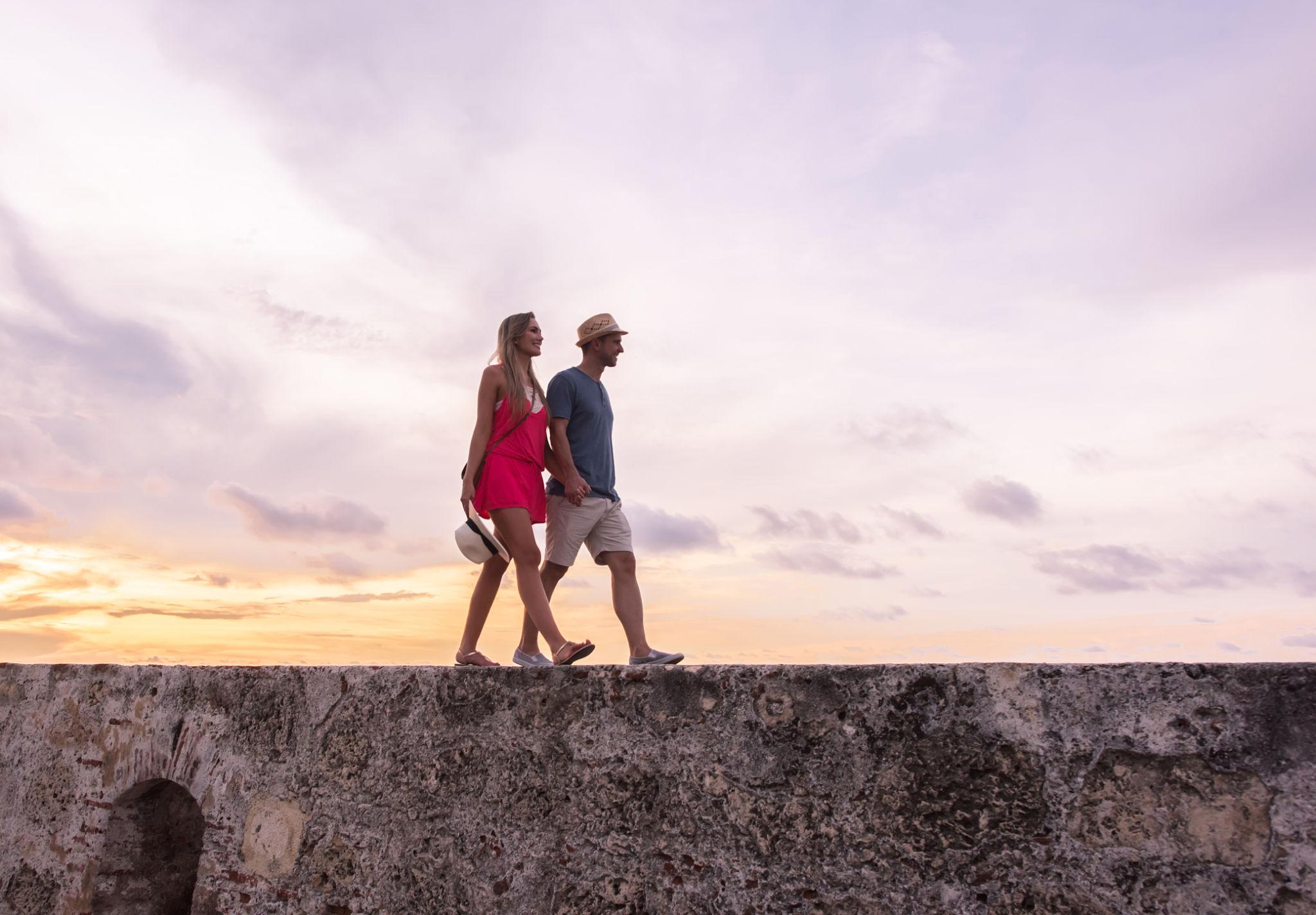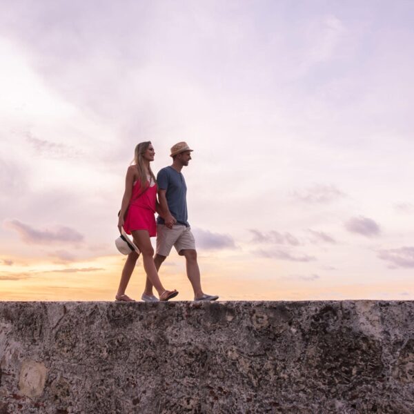 No final da tarde, sairão para um passeio especial pelas muralhas de Cartagena, onde o pôr do sol pinta o céu sobre o mar Caribe, criando um dos momentos mais mágicos da viagem.