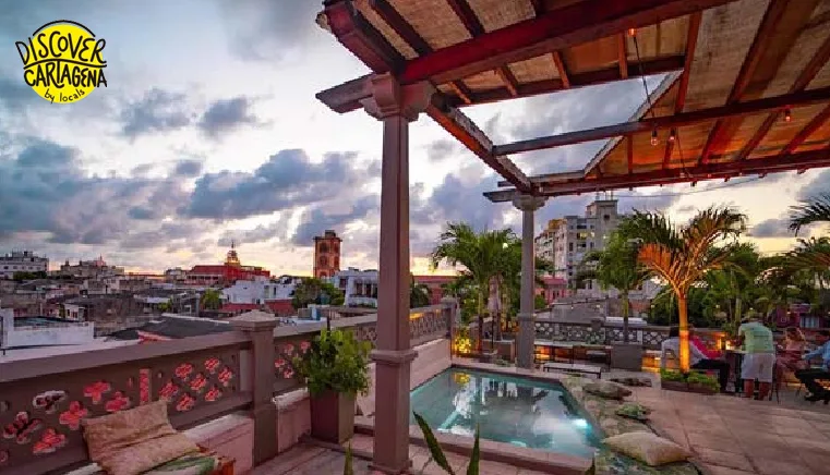 In the first place, we have Movich Hotel, located at Calle de Vélez Danies # 4 – 39, Movich Hotel Cartagena de Indias. With its imposing colonial style, it offers an impressive rooftop terrace available in the afternoon/evening, from 4 pm to 11 pm.