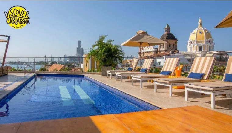 In third place we have Sophia, located at Cl. 32 # 4-45 in the Historical Center, a unique space that captivates you in the Plaza de la Aduana, the main square of the city. It offers an attractive terrace that has a pool, loungers, armchairs, and bar service, from which you can enjoy an impressive panoramic view of the city, with the San Pedro Claver Church directly in front of you.